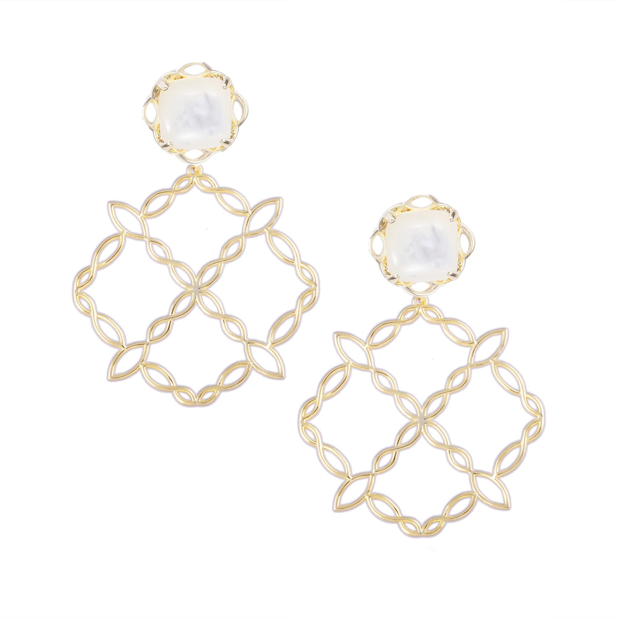 Radiating elegance and meaning, the Bloom Statement Earrings are a true expression of faith and femininity. Designed with Natalie’s signature filigree cross pattern, these lightweight statement earrings feature a luminous mother-of-pearl accent framed in gold. Each delicate interlocking detail symbolizes unity and strength—making them as meaningful as they are beautiful.