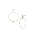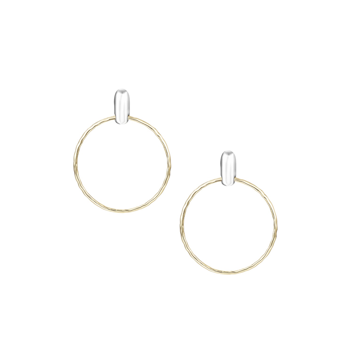 A fresh take on a classic, our these earrings feature a two-tone design that blends modern silver with warm gold tones. The lightly hammered gold hoop creates soft shimmer with every movement, while the polished silver top adds an effortlessly refined contrast.