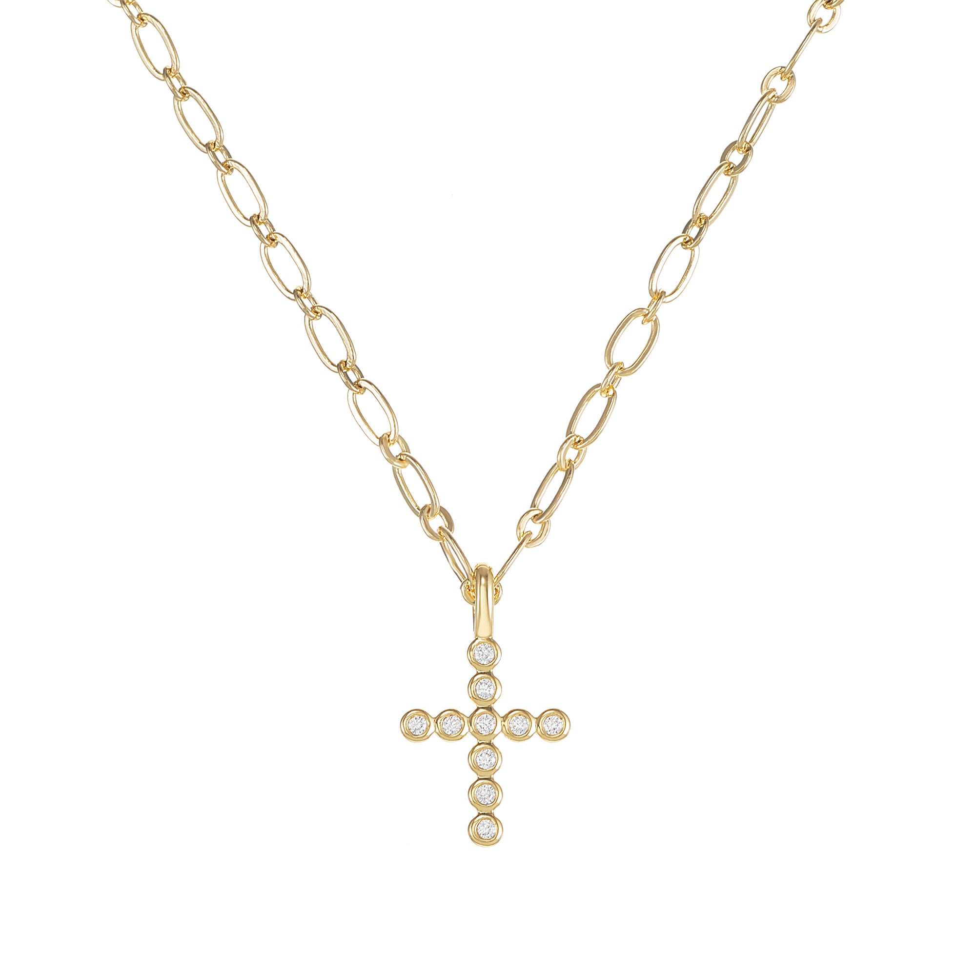 The Legacy Cross Necklace, our pavé cross pendant is a signature expression of faith and elegance. Featuring a delicate gold chain and a radiant cross pendant lined with sparkling cubic zirconia, this necklace was designed to serve as a meaningful reminder of light and love.