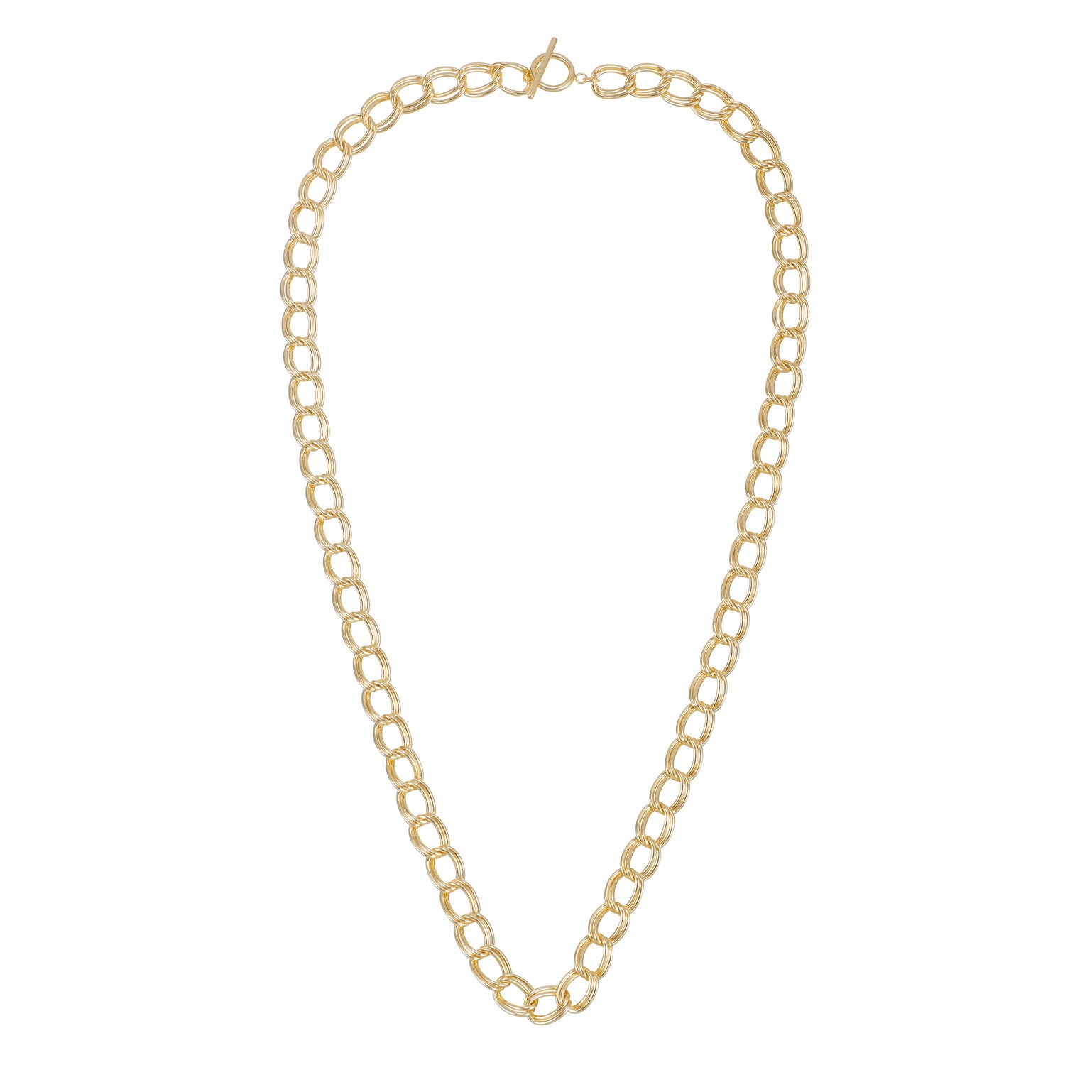 Make a statement with timeless sophistication. The Seaside Chain Necklace features interlocking oval links with a polished gold finish, designed to capture light and layer beautifully with your everyday favorites. Its classic toggle clasp adds a modern, effortless touch - equally striking worn solo or paired with other chains from the collection.