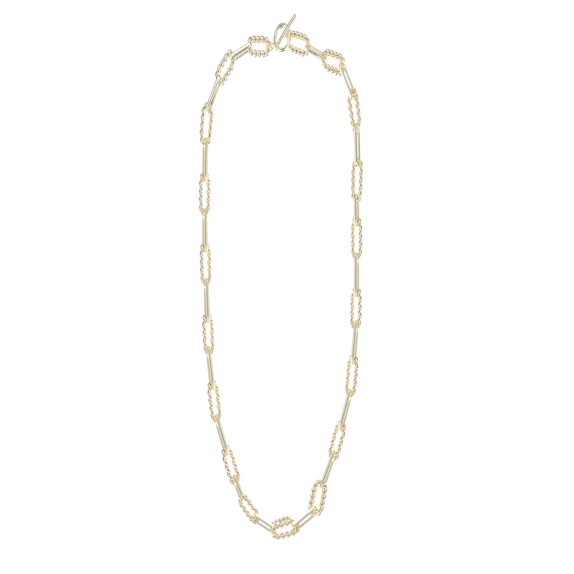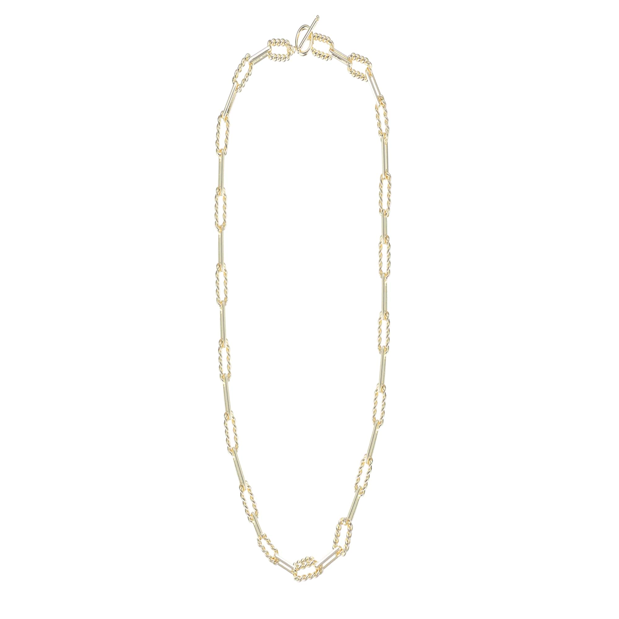Sophisticated yet bold, our She's Spicy Mini Chain Link Necklace blends modern geometry with timeless shine. Featuring alternating twisted and smooth elongated links, this statement piece captures light beautifully while maintaining a sleek, lightweight feel. Crafted in polished 14K gold plating, it’s designed for layering or standing out on its own - perfect for dressing up a simple blouse or adding polish to your everyday look.