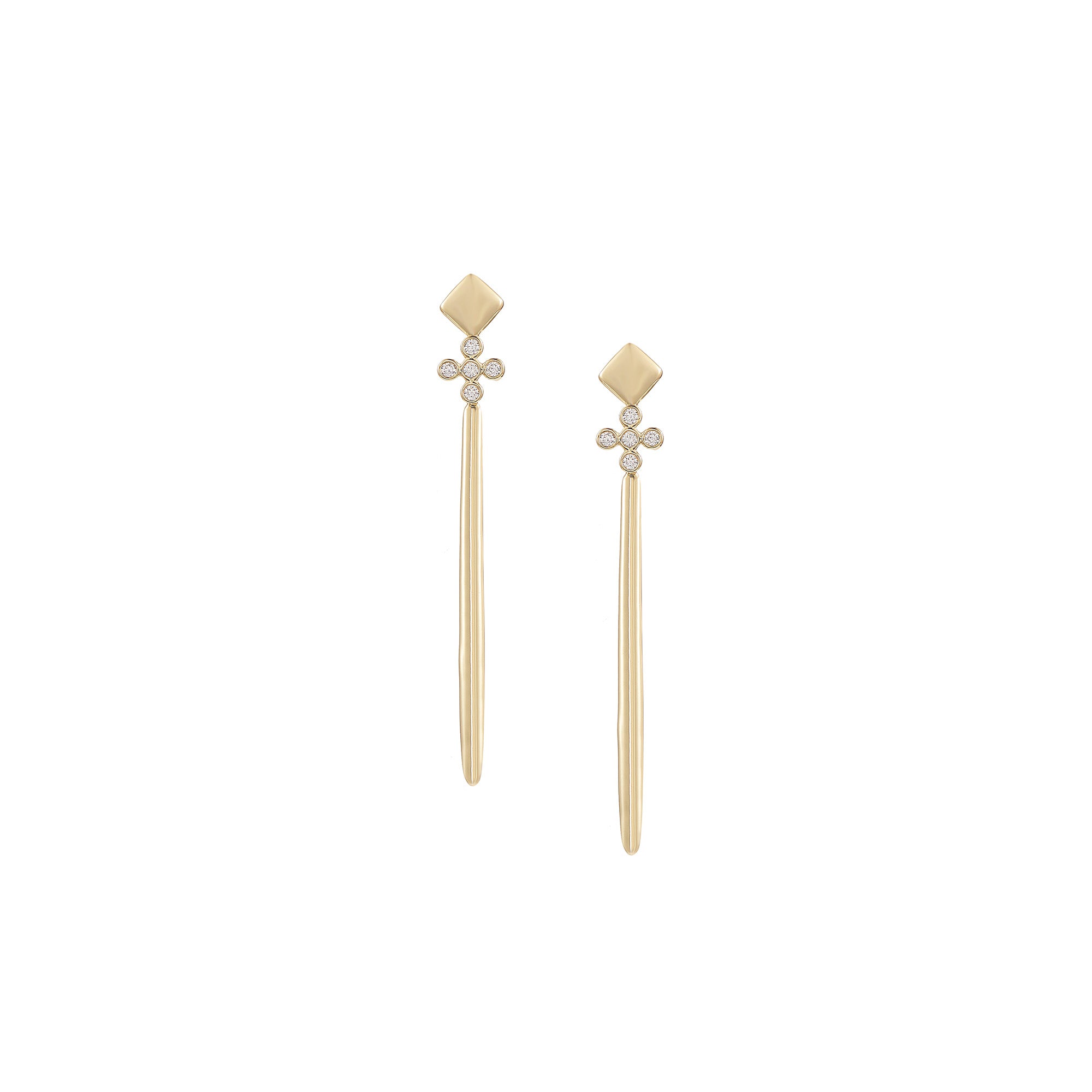 Sophisticated and symbolic, the our Legacy Cross Drop Earrings combine clean lines with delicate brilliance. The elongated gold bar is anchored by a pavé-set cross detail- a subtle nod to faith and light - creating a silhouette that’s both modern and meaningful.