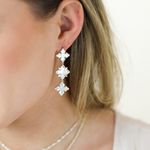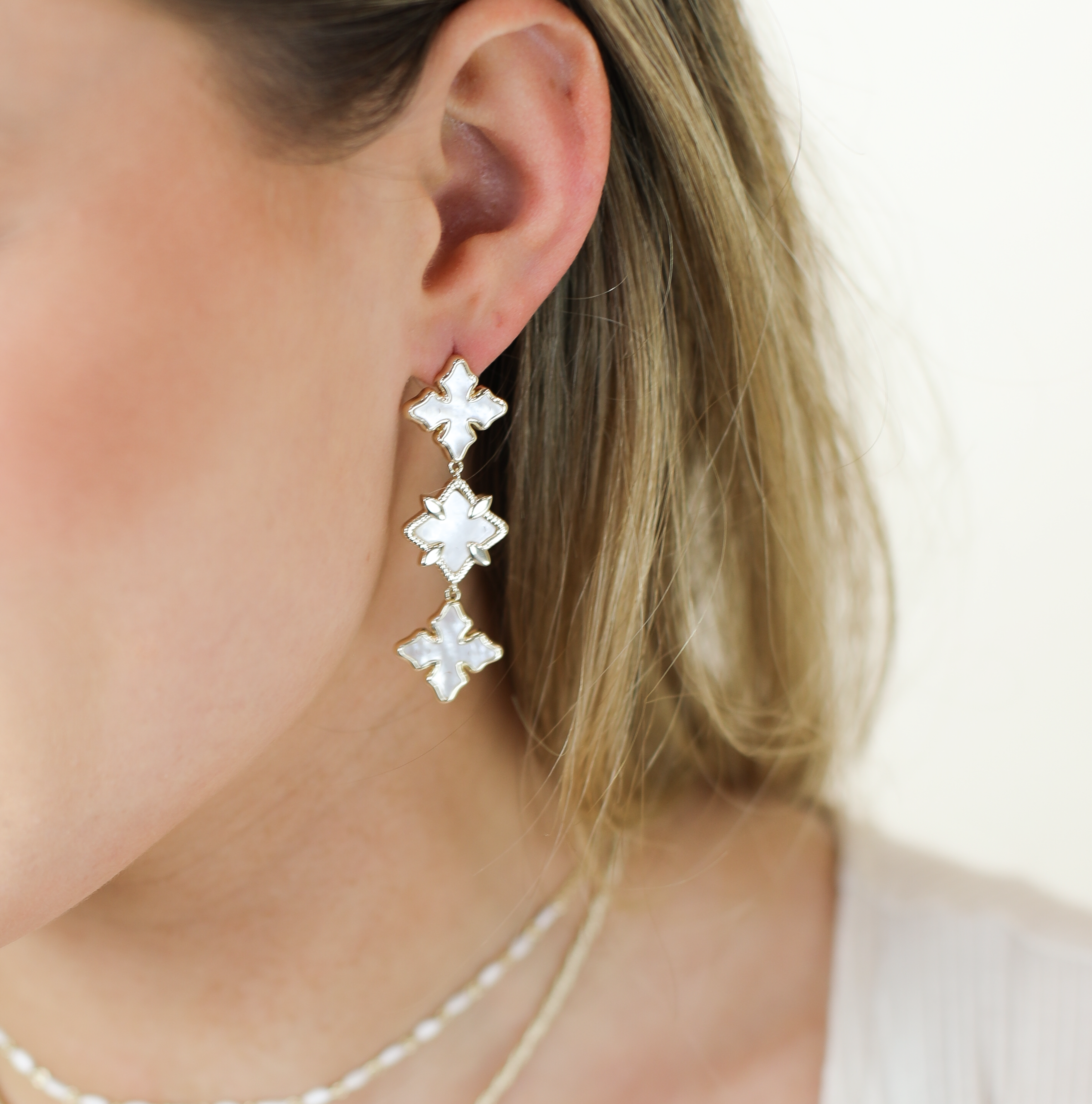 Cross Linear Statement Earrings Ivory Pearl Gold Gold