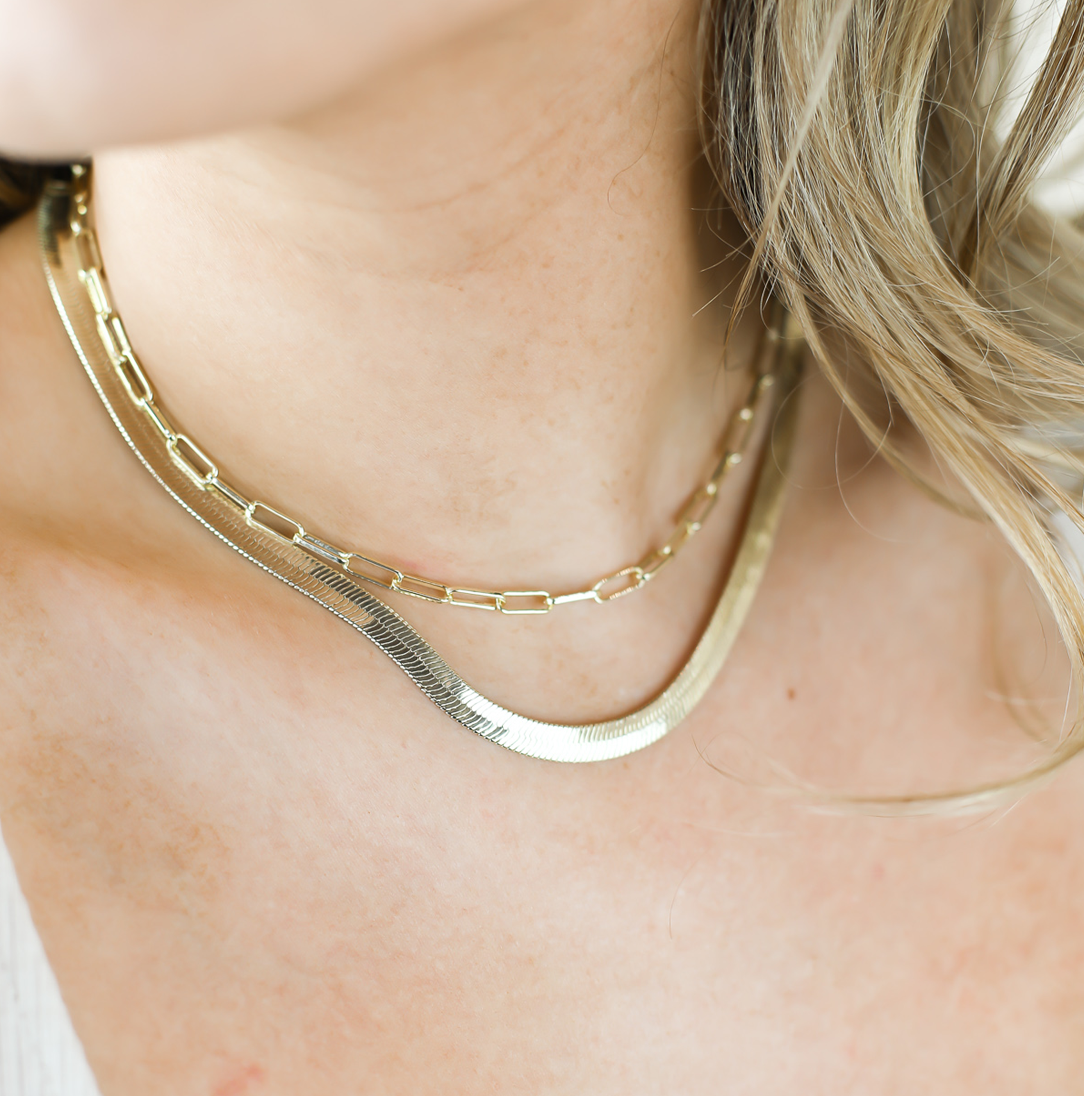 The perfect layering piece our Snake Chain Layering Necklace is the prettiest new addition to compliment your spring and summer looks.
