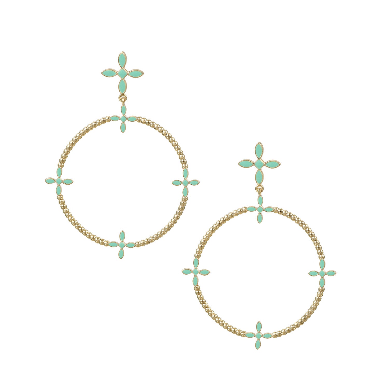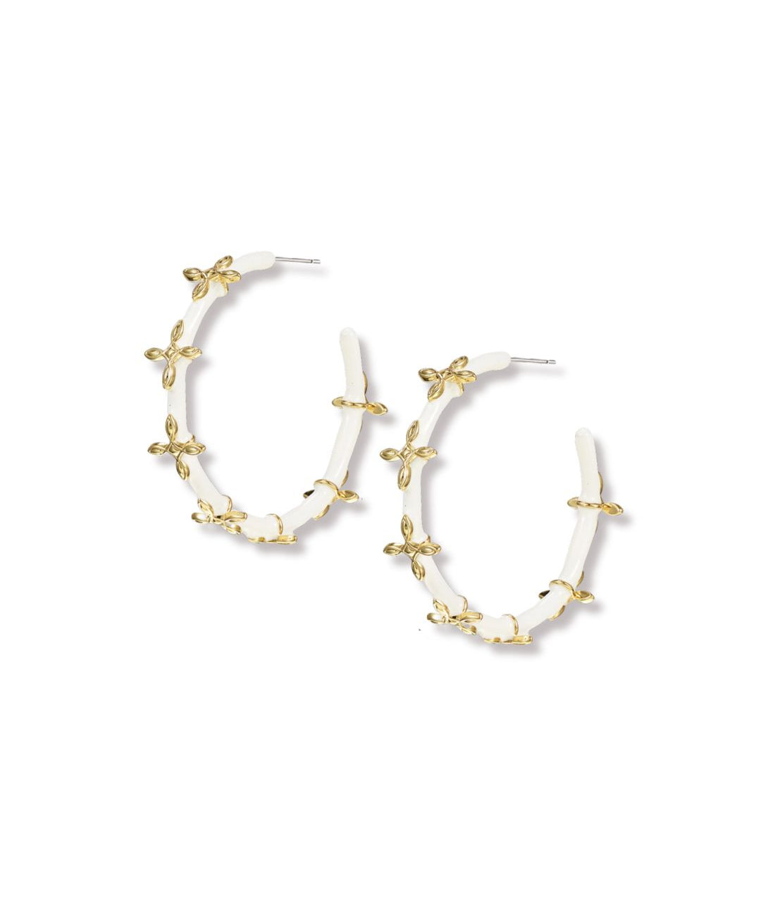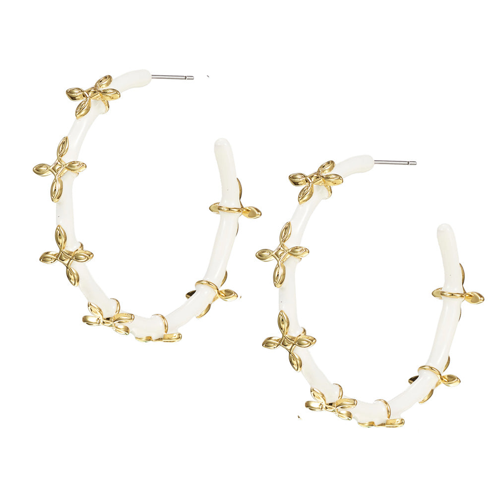 Sea Breeze Cross Hoop Earrings Gold White Enamel