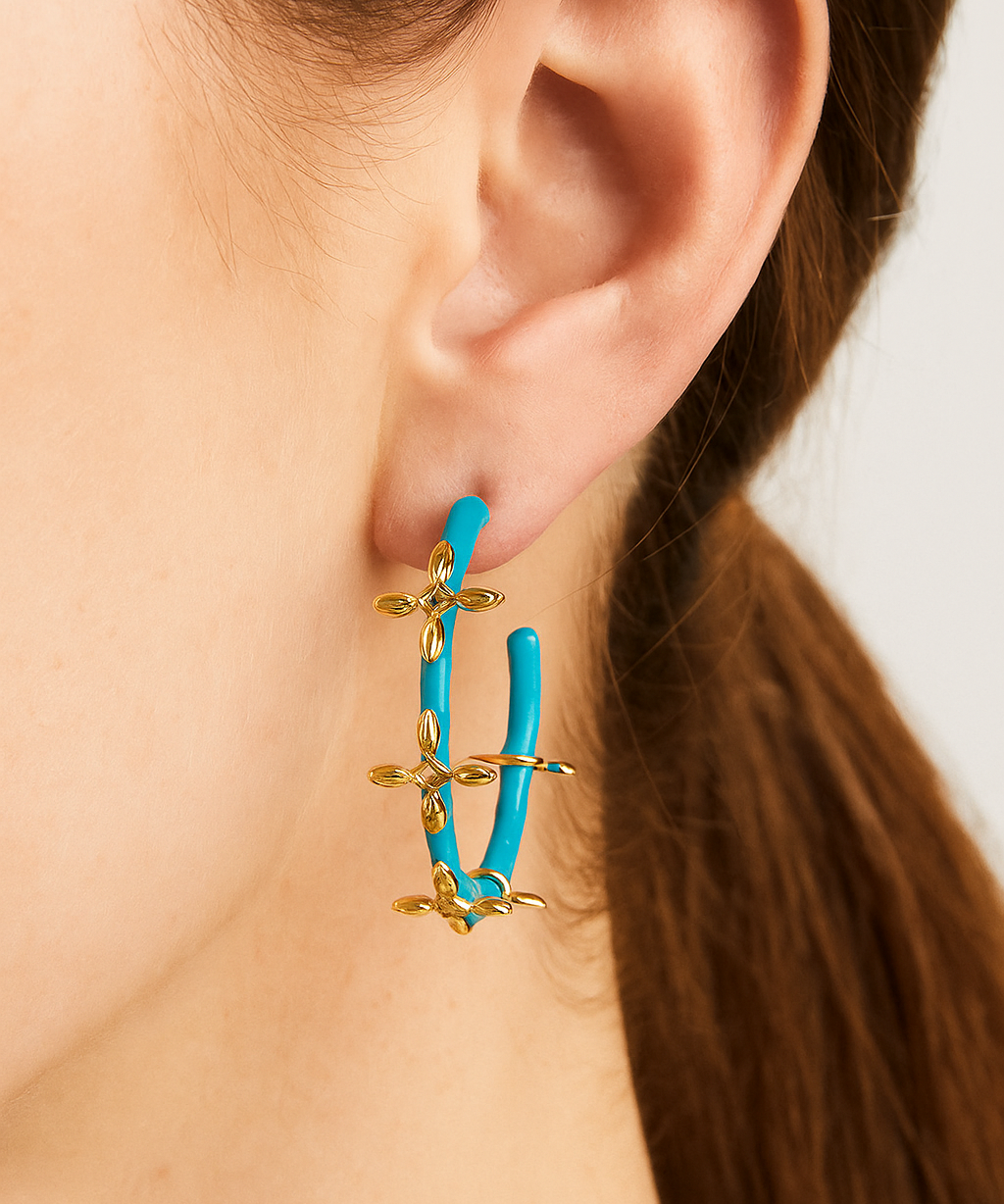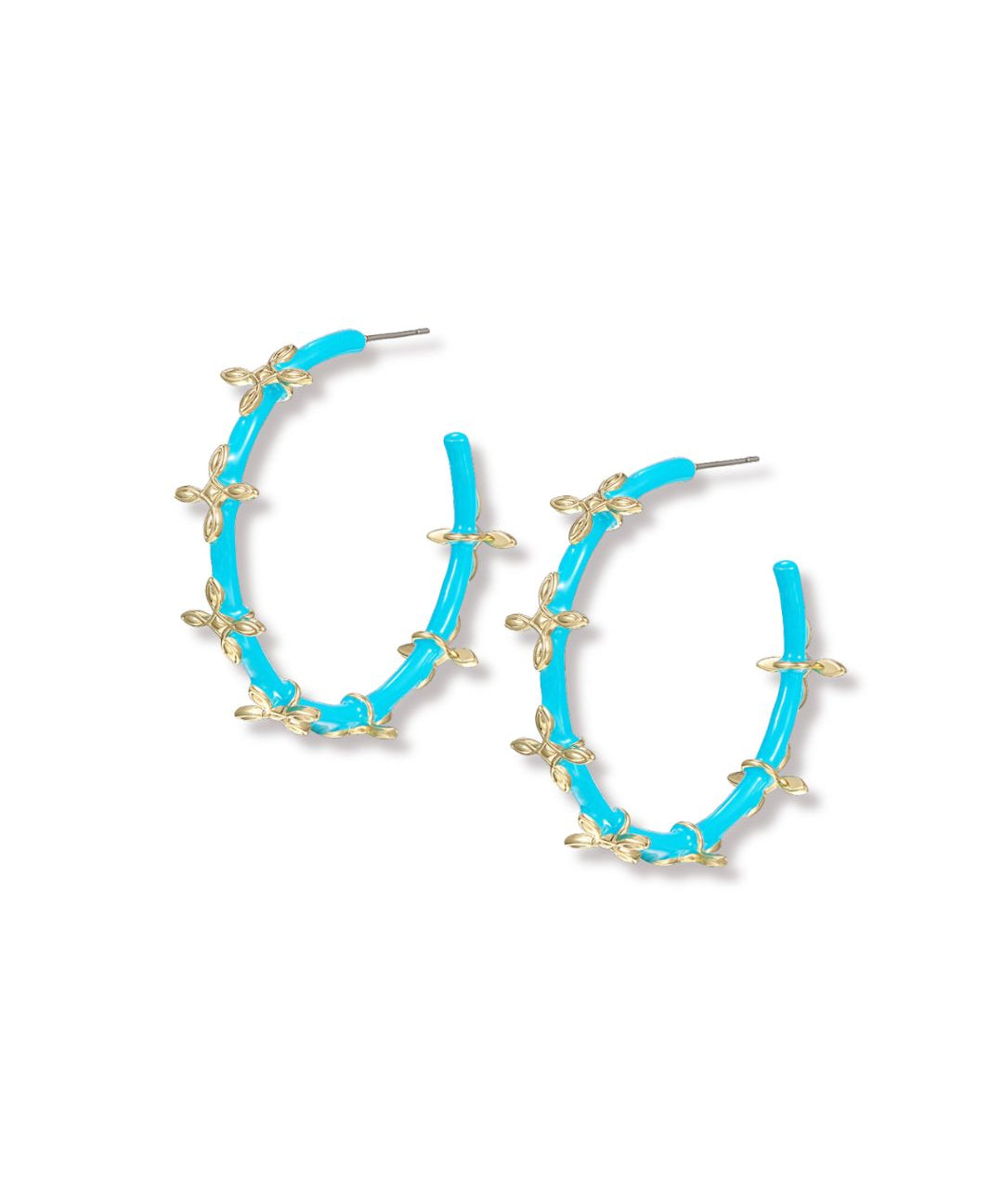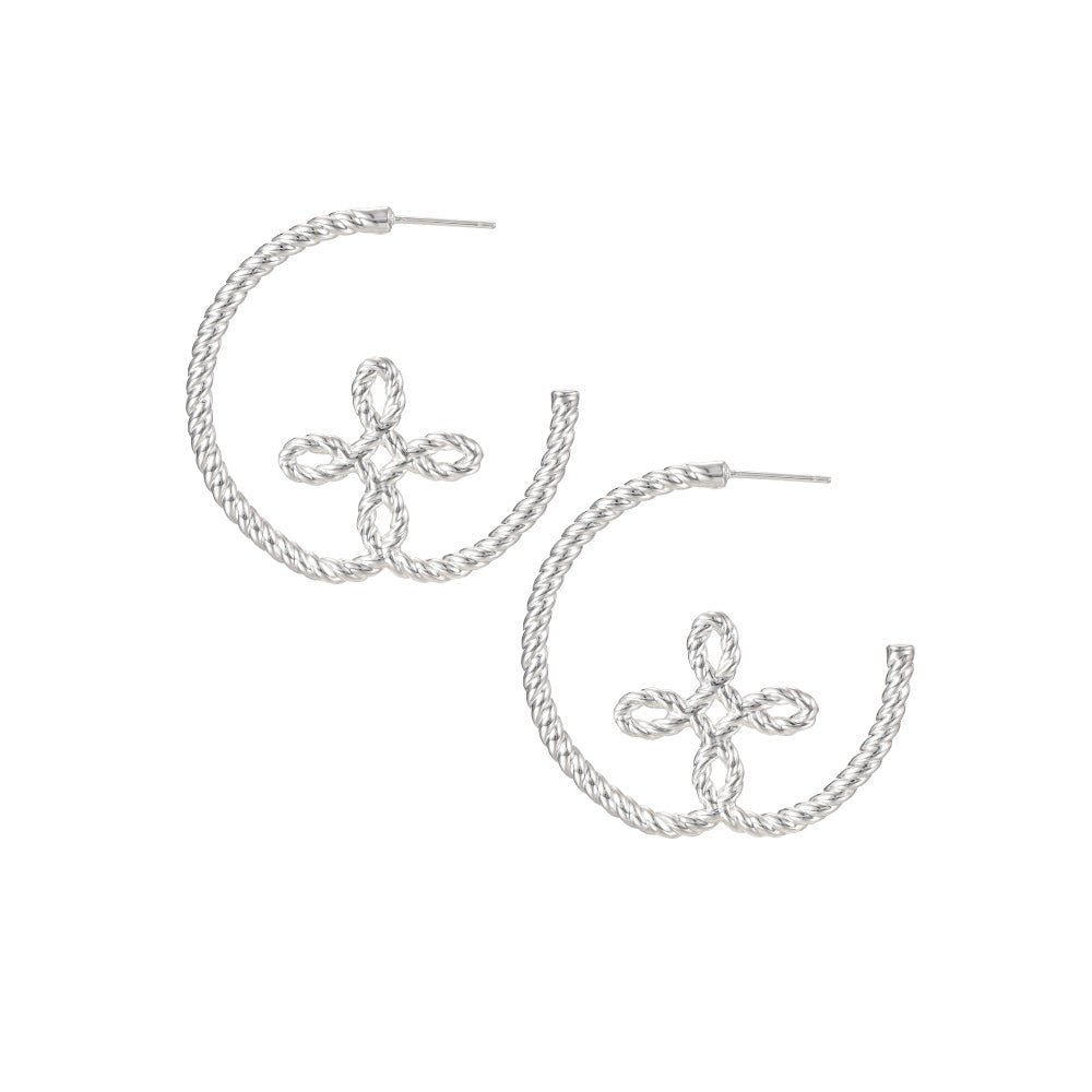 Sea Breeze Cross Hoop Earrings Gold White Enamel