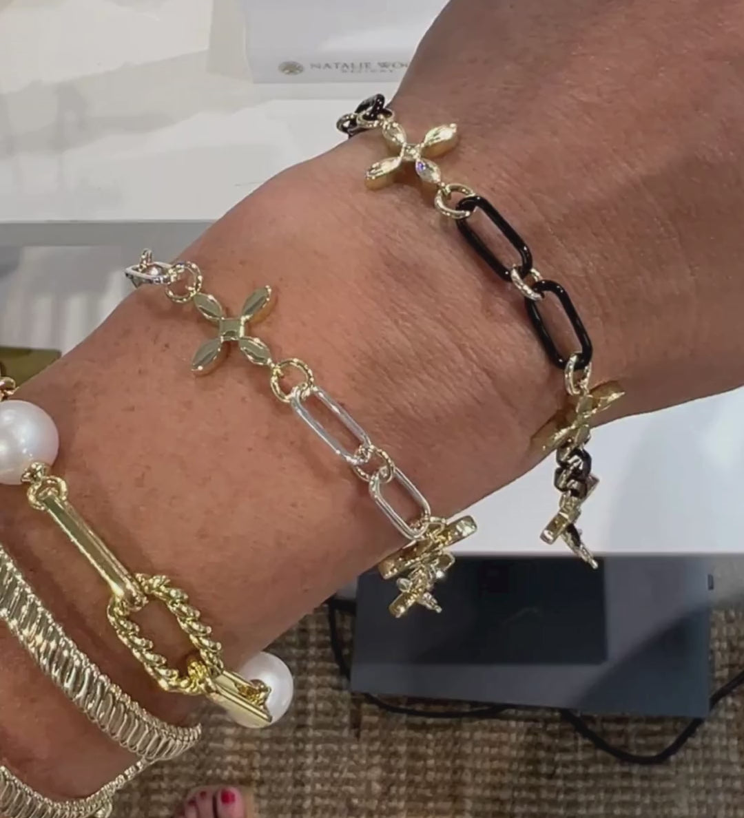 Enchanted Cross Link Bracelet in Black/Gold