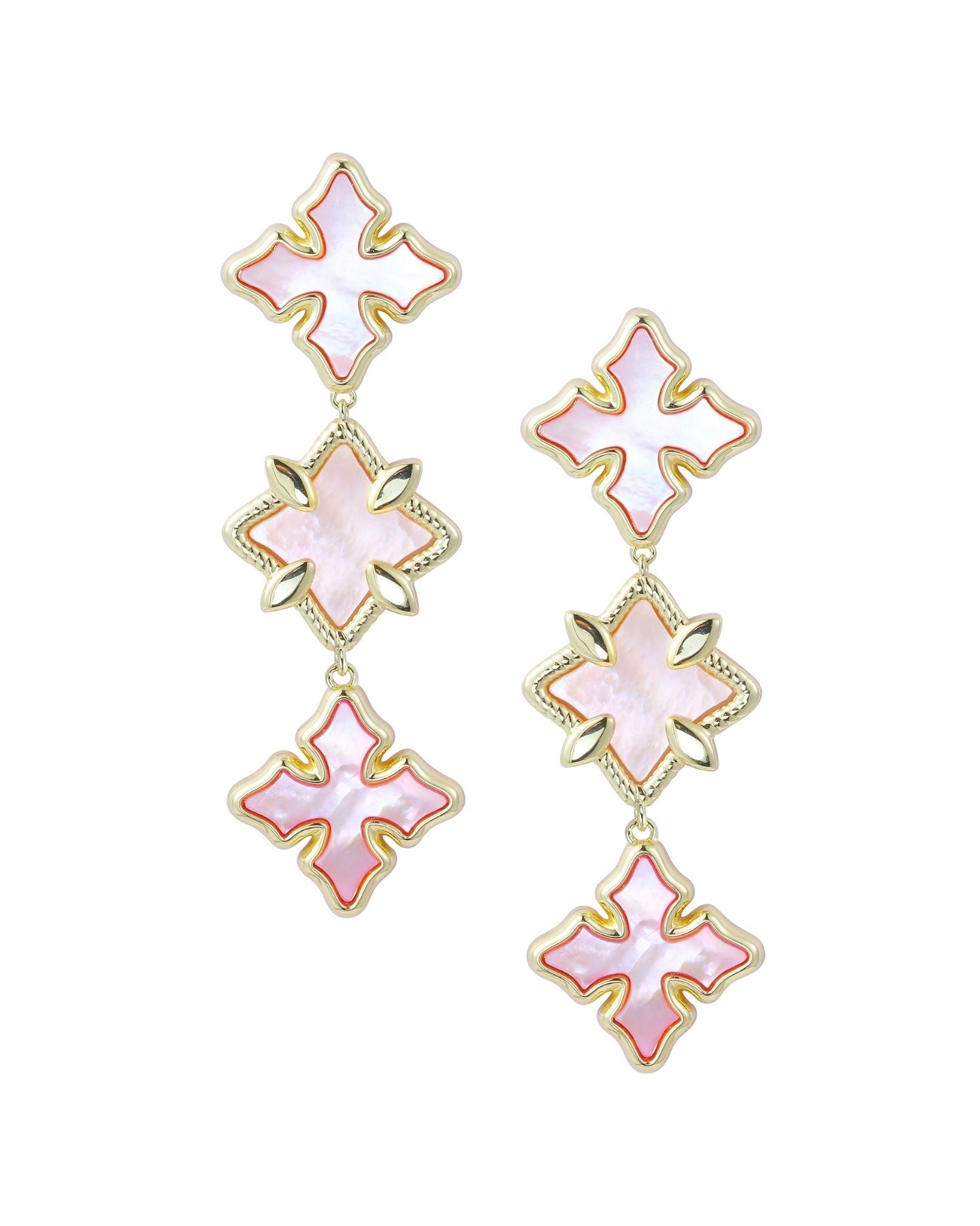 Cross Linear Statement Earrings in Pink Pearl/Gold Pink Mother of Pearl Gold