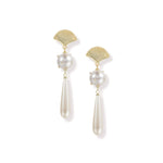 Modern elegance meets timeless charm in the Carolina Statement Earrings. Designed with a fan-shaped gold top and luminous pearl drops, these earrings move beautifully with every turn. Lightweight and refined, they add a touch of sophistication to both casual and formal looks — the perfect statement for day or night.