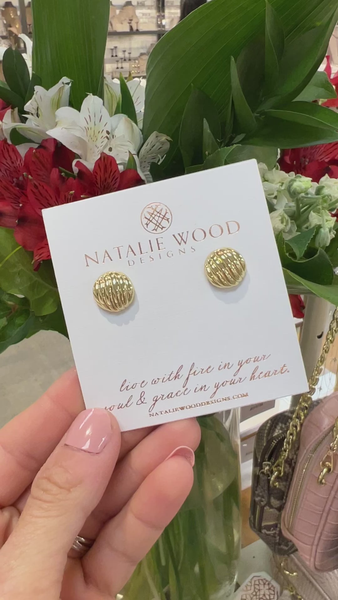 Timeless and effortlessly polished, the Eclipse Ball Stud Earrings are your everyday go-to. Their sculpted, ribbed texture catches the light beautifully, adding just the right touch of shine to any look. Lightweight and classic, they pair perfectly with everything from casual sweaters to evening styles.