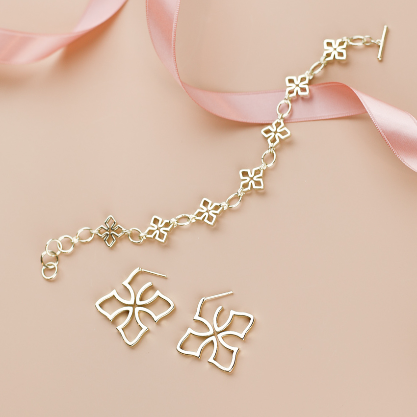 Our Grace Cross Hoop Earrings blend modern sophistication with timeless meaning. Featuring Natalie Wood Design’s signature open cross design, these lightweight hoops offer a bold yet airy silhouette that frames the face beautifully.