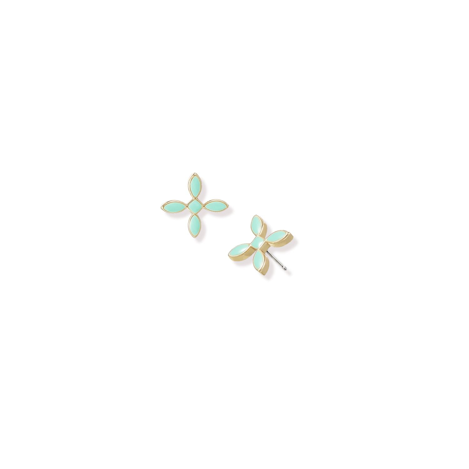 Enamel Cross Stud Earrings Light Blue Enamel Gold