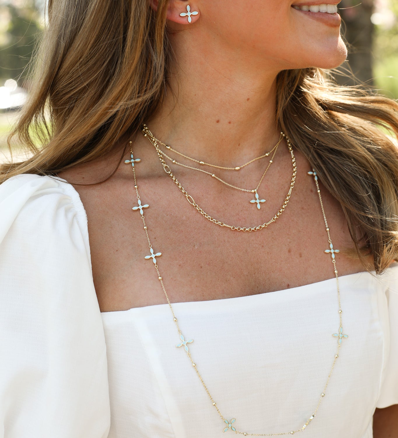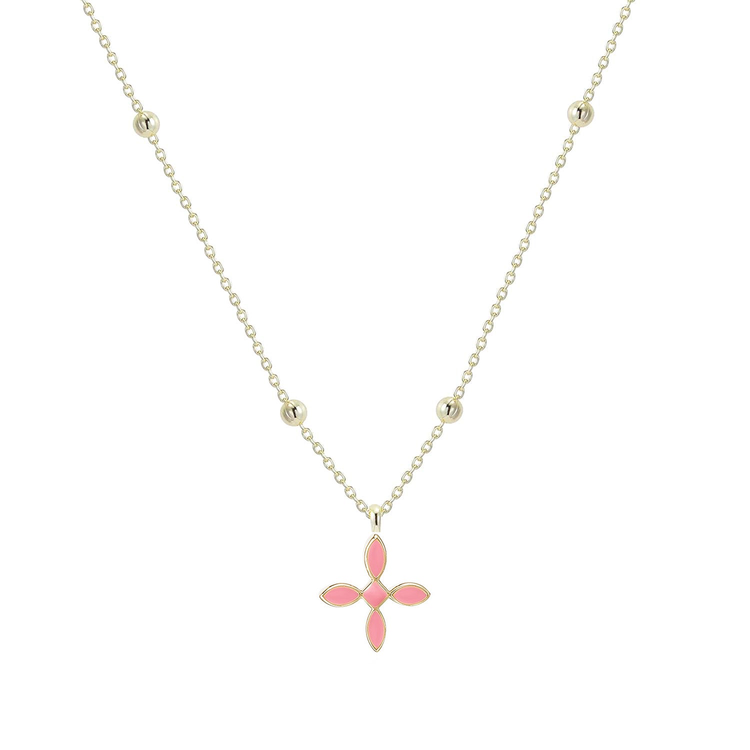 Enamel Cross Drop Necklace in Light Pink Enamel