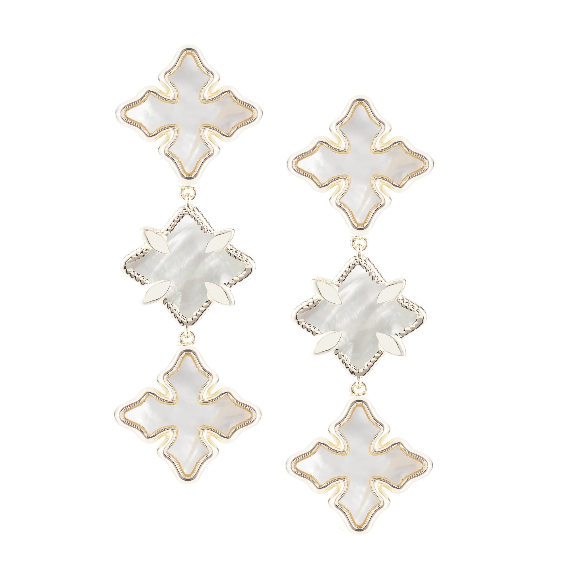 Cross Linear Statement Earrings Ivory Pearl Gold Gold
