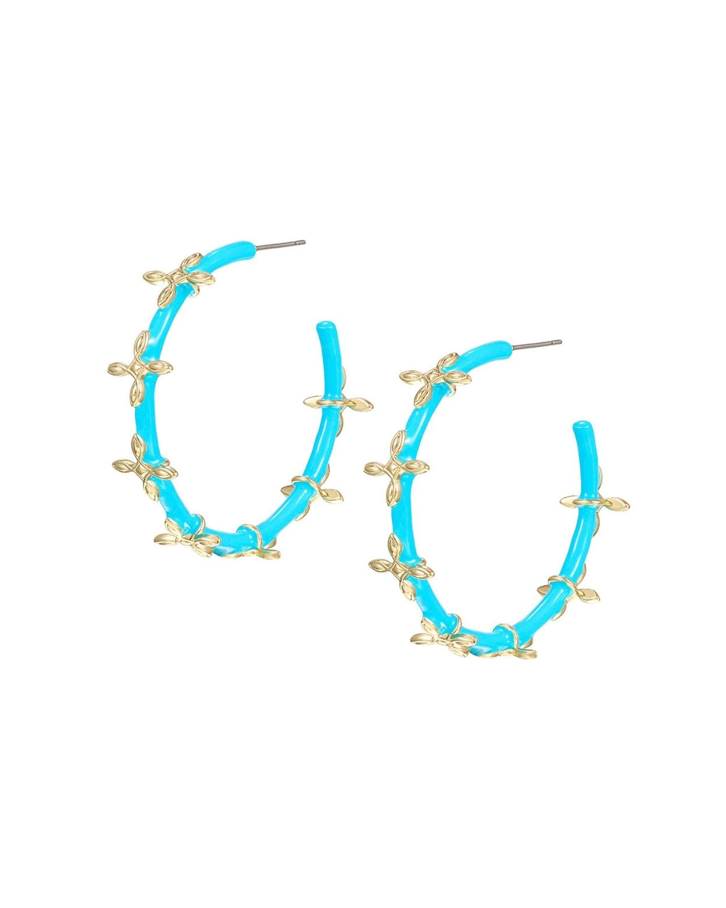 Sea Breeze Cross Hoop Earrings in Light Blue Enamel