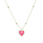 Add a pop of joy to your every day with this radiant pink heart necklace. Crafted in 14k gold-plated metal and set on a delicate beaded chain, its vibrant hue symbolizes love, happiness, and confidence. Hypoallergenic, lightweight, and designed to shine with every outfit.