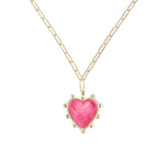 Adorned Heart Pendant Necklace in Pink Enamel