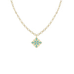 Inspired by faith and designed with meaning, the Bloom Necklace brings a pop of color to your classic style. This best-selling silhouette features our signature filigree cross pattern, reimagined with a hand-painted aqua enamel inlay that adds a vibrant yet timeless touch.