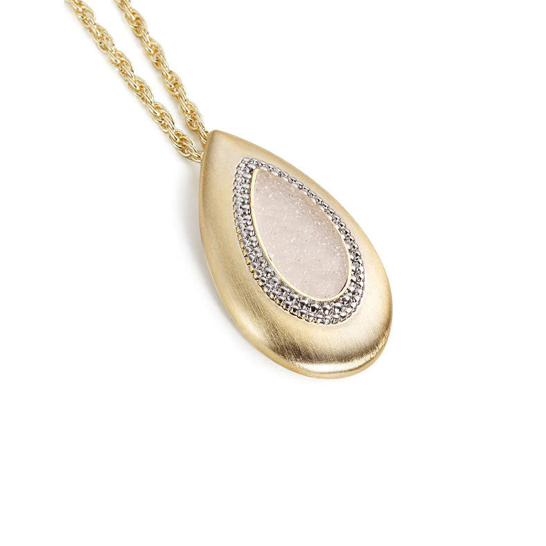 She's a Gem Pendant Necklace White Drusy/Gold Grey Drusy/Gold