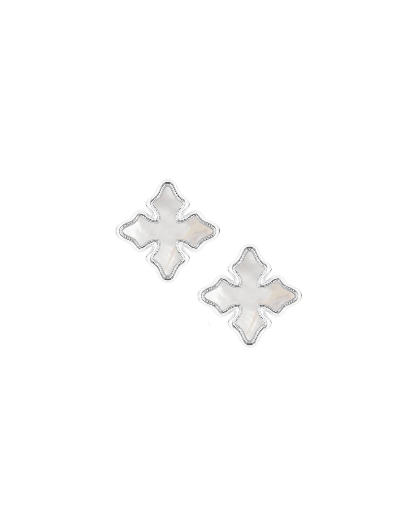 Cross Stud Earrings Ivory Pearl Silver