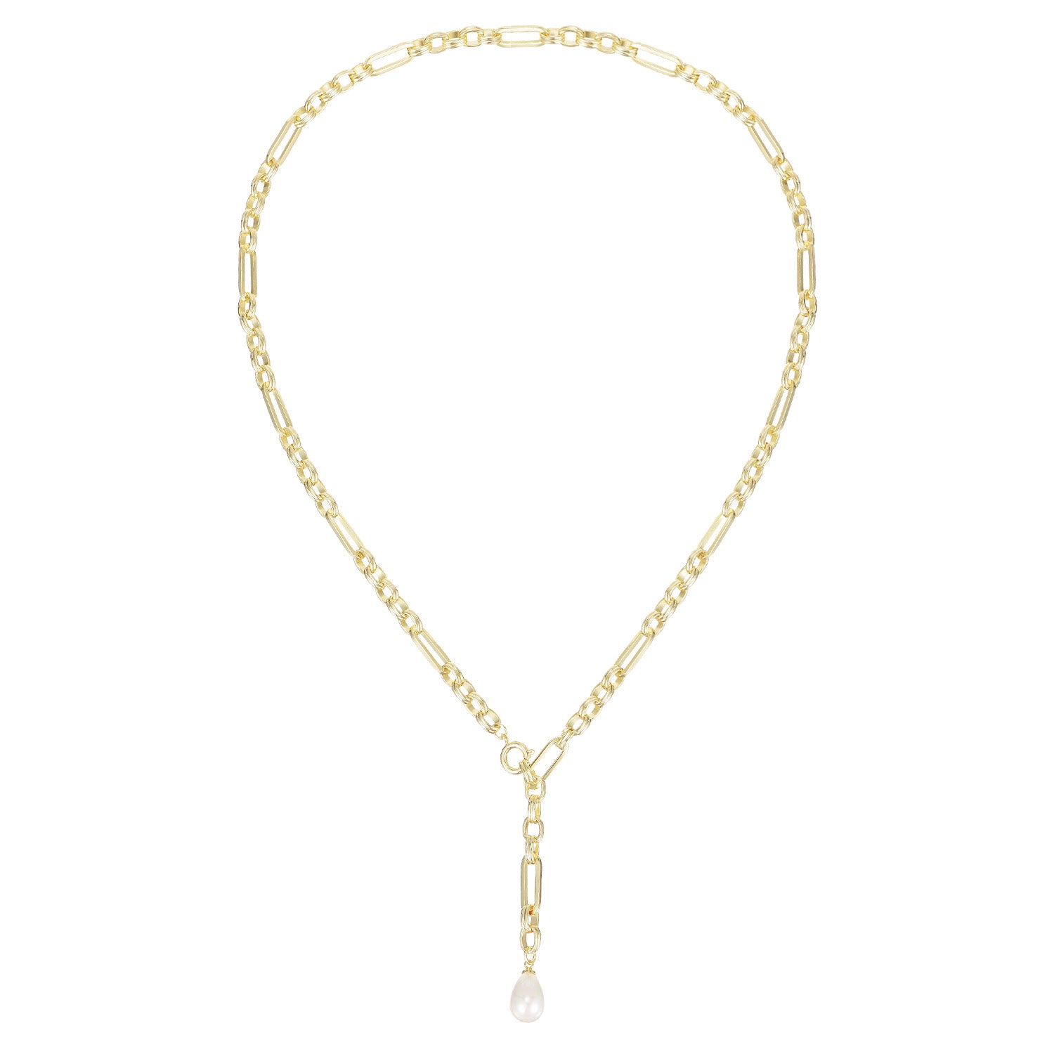 Elegant and effortless, the Allure Pearl Lariat Necklace combines modern link design with a single freshwater pearl drop. Crafted in 14k gold-plated brass, this piece brings a soft sophistication to every neckline. Whether layered or worn alone, it’s designed to move with you — timeless, versatile, and beautifully refined.