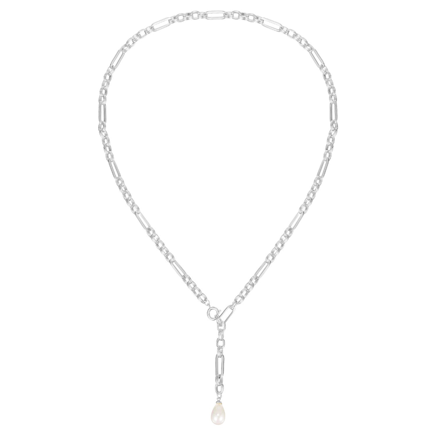 Allure Pearl Lariat Necklace in Silver