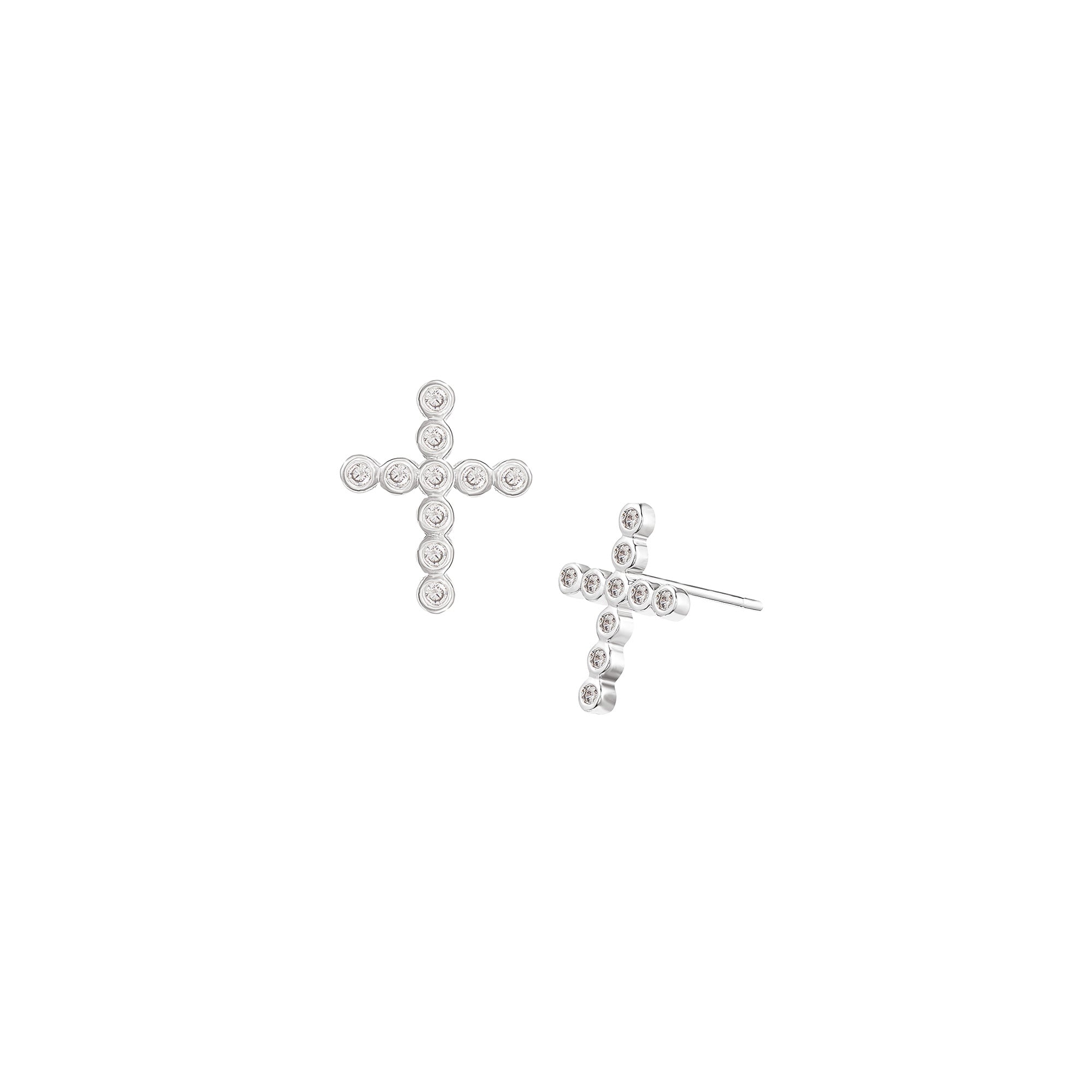 Chic and understated, these pavé cross stud earrings bring everyday elegance to your jewelry box. Crafted with luminous silver plating and brilliant pavé stones, they capture the light beautifully while serving as a subtle symbol of faith and grace.