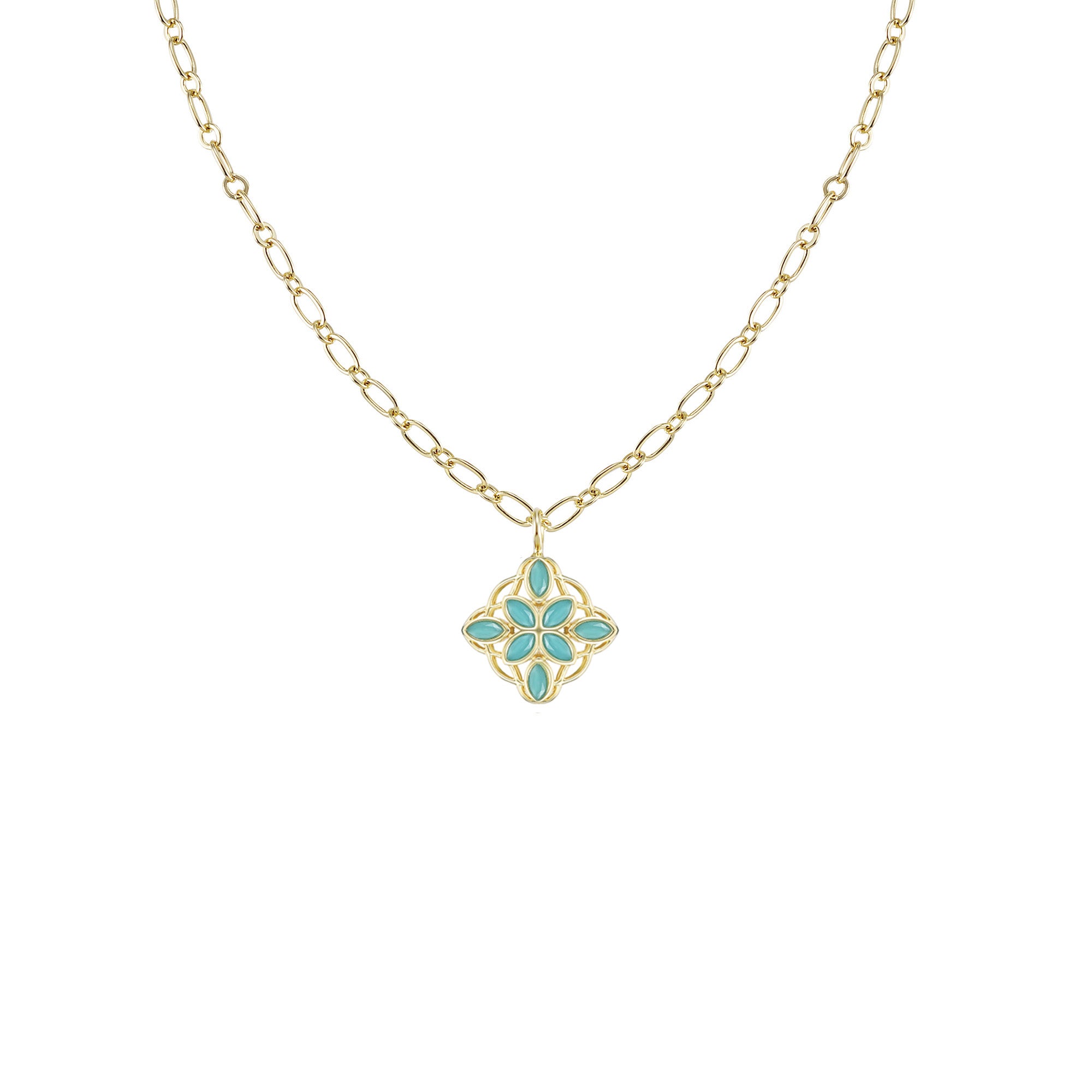 Enamel Cross Drop Necklace Light Blue Enamel Gold