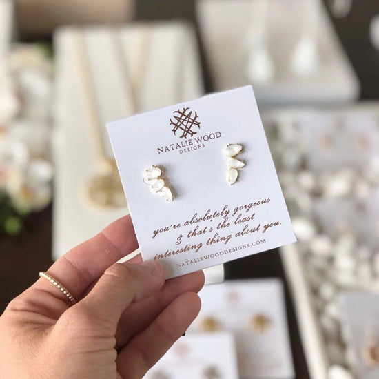 A fresh take on the ear crawler trend the Natalie Wood Designs Daydreamer Stud Earrings beautifully adorn your ear. Featuring rose cut teardrop stones these earrings scream effortless luxury.