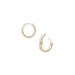 Effortlessly chic with a touch of texture, these huggie earrings are a timeless essential for every jewelry collection. Designed in polished 14K gold plating, these small hoops feature a classic twisted rope pattern that adds dimension and shine while remaining lightweight and comfortable for all-day wear. Their petite 0.5" size makes them perfect for everyday styling - whether layered for an earring stack or worn solo for understated elegance.