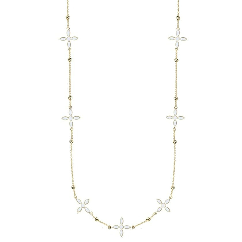 Enamel Cross Station Necklace in White Enamel