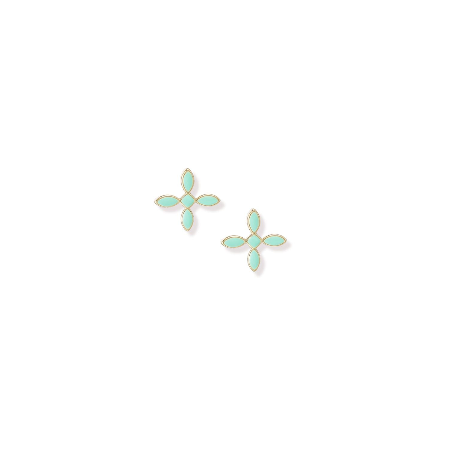 Bright, bold, and effortlessly elegant — the Enamel Cross Stud Earrings bring timeless style with a modern twist. Featuring vibrant mint green enamel framed in 14K gold-plated detail, these stud earrings add a refined pop of color that instantly elevates any outfit.