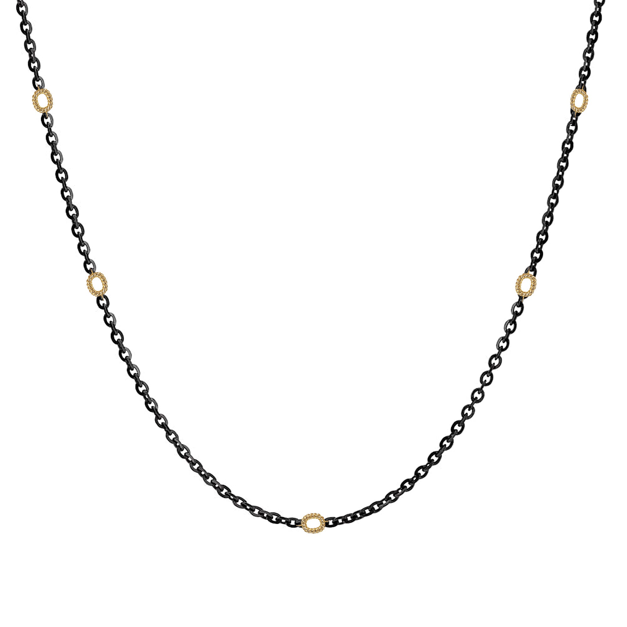 Refined and versatile, the Legacy Chain Station Necklace offers an elevated take on modern minimalism. Featuring a sleek black chain accented with gold rope-textured links, it captures the essence of bold femininity with subtle edge.