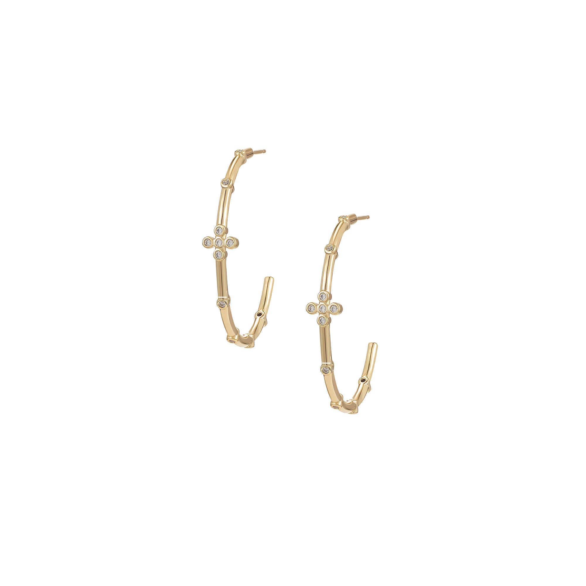 These pavé cross hoop earrings marry timeless design with modern brilliance. Featuring delicate pavé-set crosses along a gold hoop silhouette, these earrings are both elegant and symbolic. Lightweight and versatile, they pair effortlessly with everything from casual outfits to evening looks.