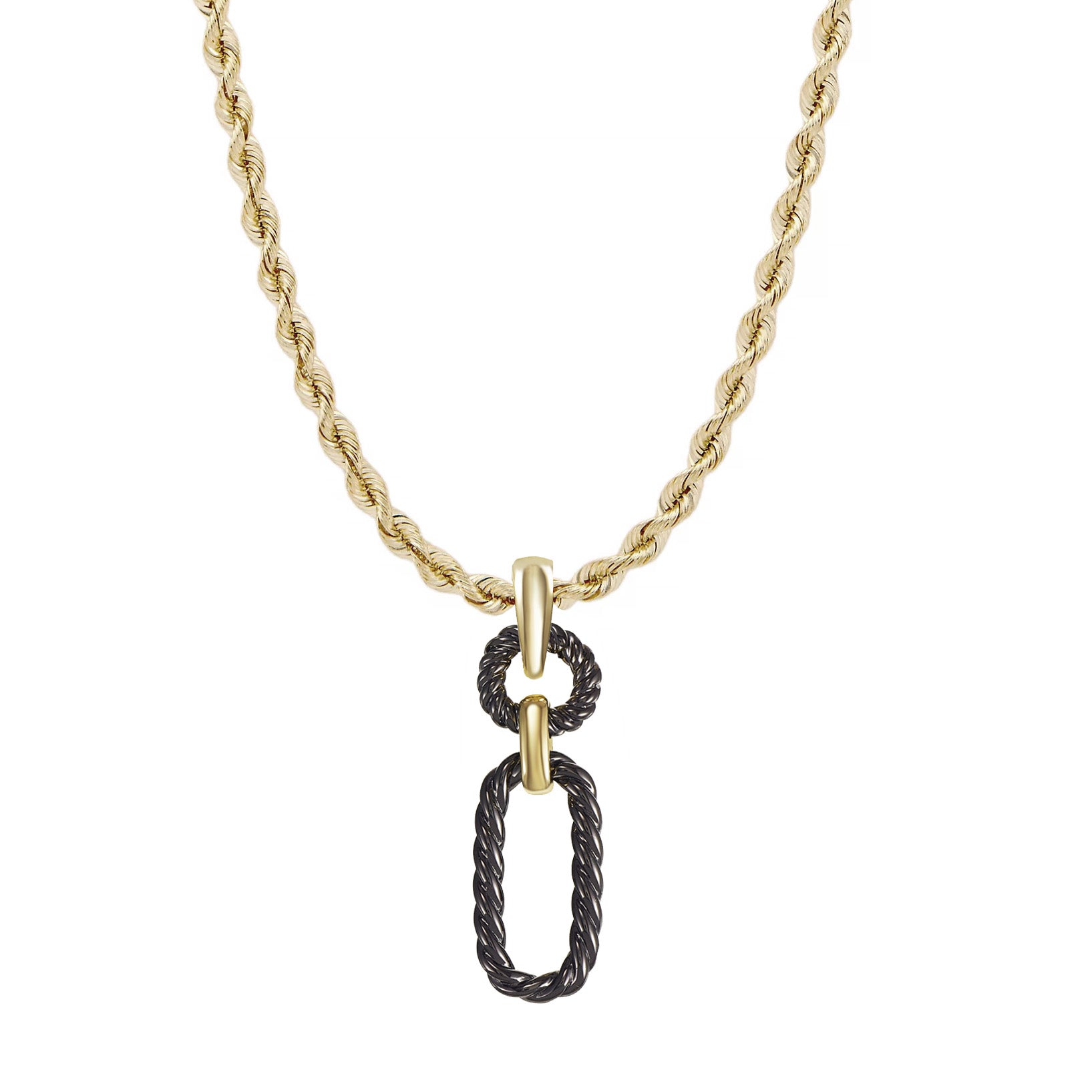 Make a statement with contrast and meaning in the pendant necklace. Combining rich gold tones with gunmetal black detailing, this necklace embodies strength and elegance in perfect balance. The twisted rope texture and bold links symbolize connection, faith, and resilience - hallmarks of Natalie Wood Designs’ signature style.